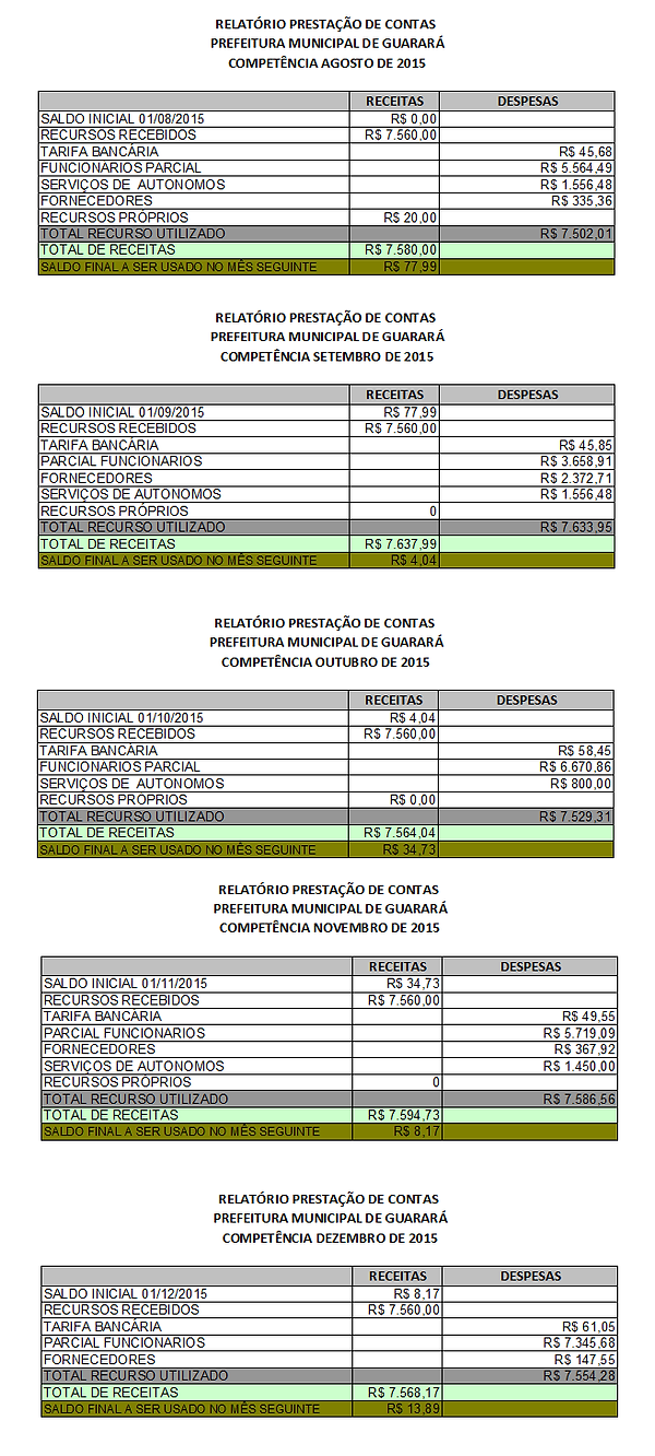 Prestação de Contas Mensal da Prefeitura Municipal de Guarará